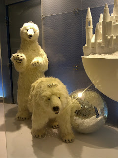 One of the visible and strategic window display is located at the back end lobby of the mall. It features a very interesting concept of display that takes us to a magical land. A mannequin, female one, stands and acts as the queen of this icy and snowy land. Her companions are cute white polar bears that are still looking active yet so tame, even you can see the tiaras in their heads. There are also some floating globes around them with two of them are featuring a very detailed and excellently done castle miniatures. Hope to see another interesting and creative concept like this in the future.